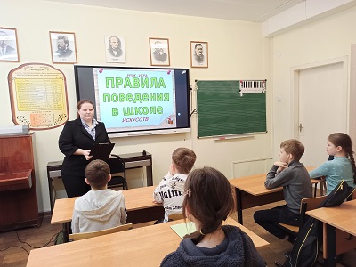 | В стенах «Детской школы искусств № 2» состоялся урок-игра «Правила поведения в школе искусств» |   7 февраля 2026 года в стенах «Детской школы искусств № 2» состоялся урок-игра «Правила поведения в школе искусств». В рамках проекта «Безопасность детства» преподаватель Волкова А.А. в игровой форме преподнесла учащимся информацию, напоминающую о том, как вести себя в школе искусств, соблюдая нравственные нормы, правила этикета и безопасного общения.