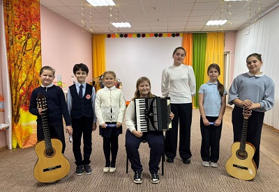 | Музыкально-развлекательное мероприятие «Походные песни под гитару» |  27 октября 2025 года в «Детской школе искусств № 2» состоялось музыкально-развлекательное мероприятие «Походные песни под гитару». Гостями нашей школы стали учащиеся СОШ № 3 и СОШ № 13. В ходе творческого мероприятия преподаватели отделения «инструменты народного оркестра» -- Петкевич Н.А., Плешивцев А.С. и Клевцова Е.В. познакомили детей с традициями, бытующими в различных походах, а также, исполнили вместе с ребятами несколько известных песен под гитару. | Понедельник 27 Октябрь 2025 - 18:42:15 | |